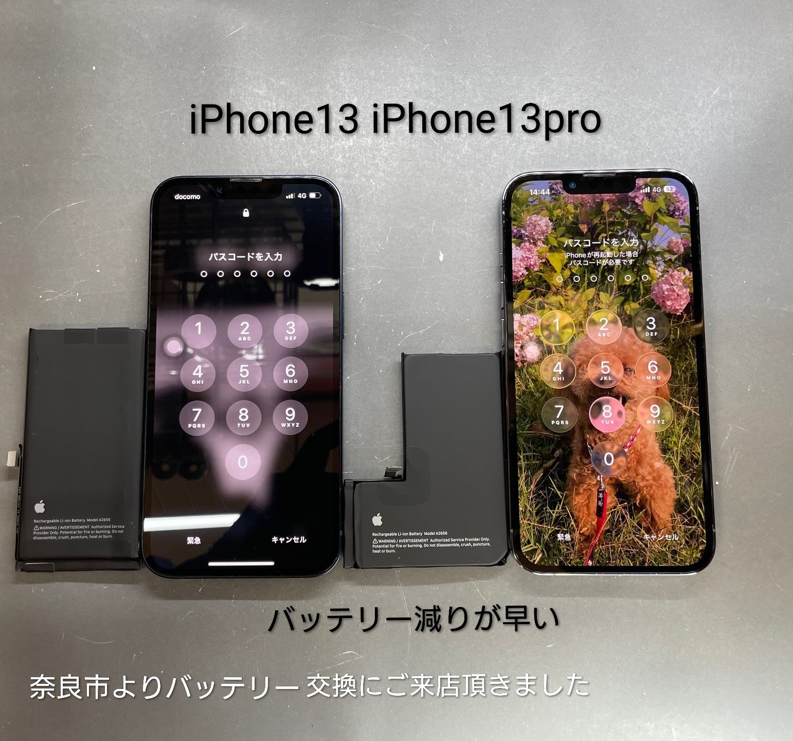 本日はiPhone 13とiPhone 13 Proの2台のバッテリー交換に奈良市よりお越しくださいました。