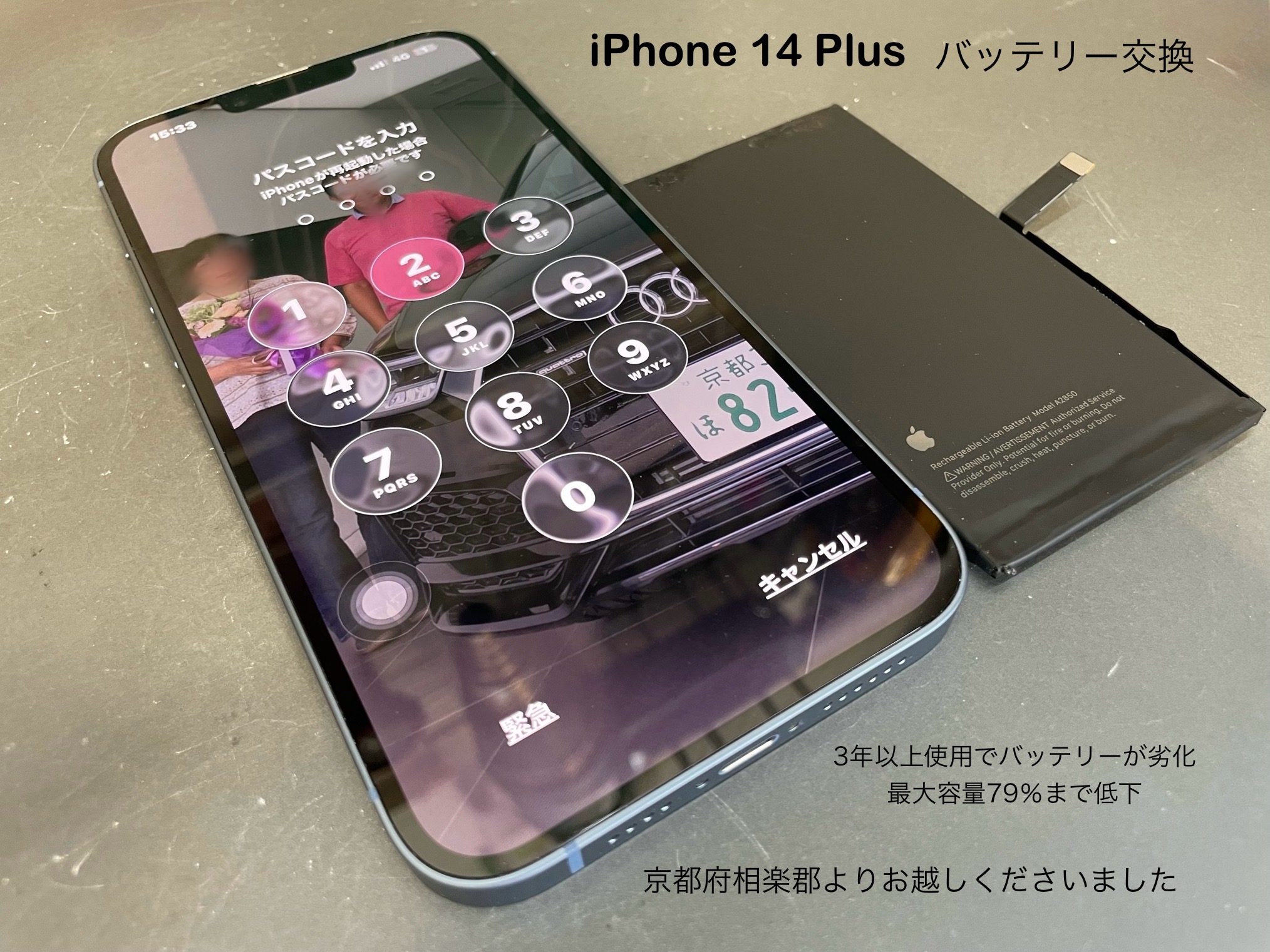 【iPhone 14 Plus バッテリー交換】iPhone・スマホ修理カメラアサヒならファミリー店です。