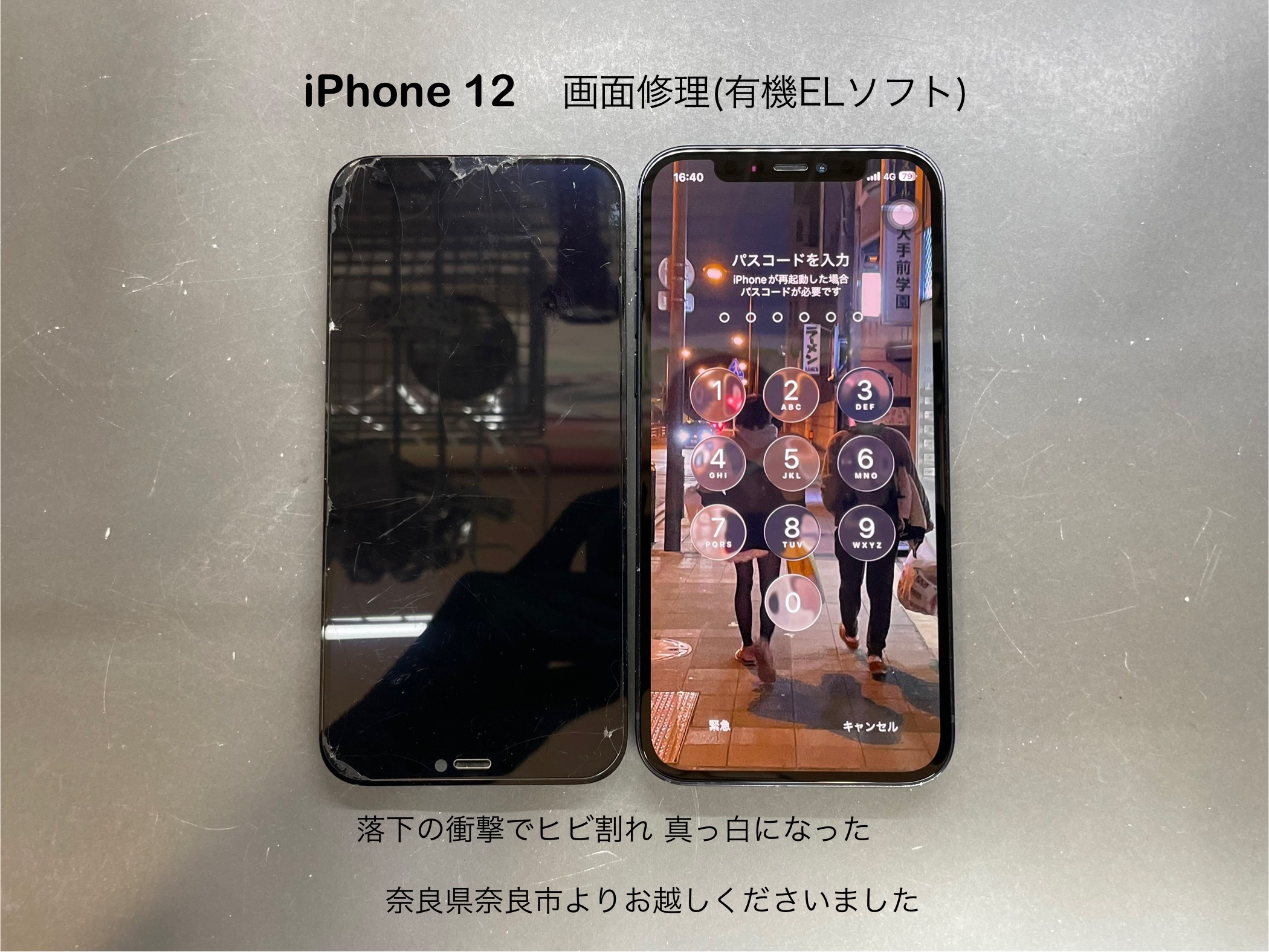 今回ご紹介させて頂きます、iPhone修理は奈良県奈良市からお越しのお客様よりiPhone 12の画面修理のご依頼です。