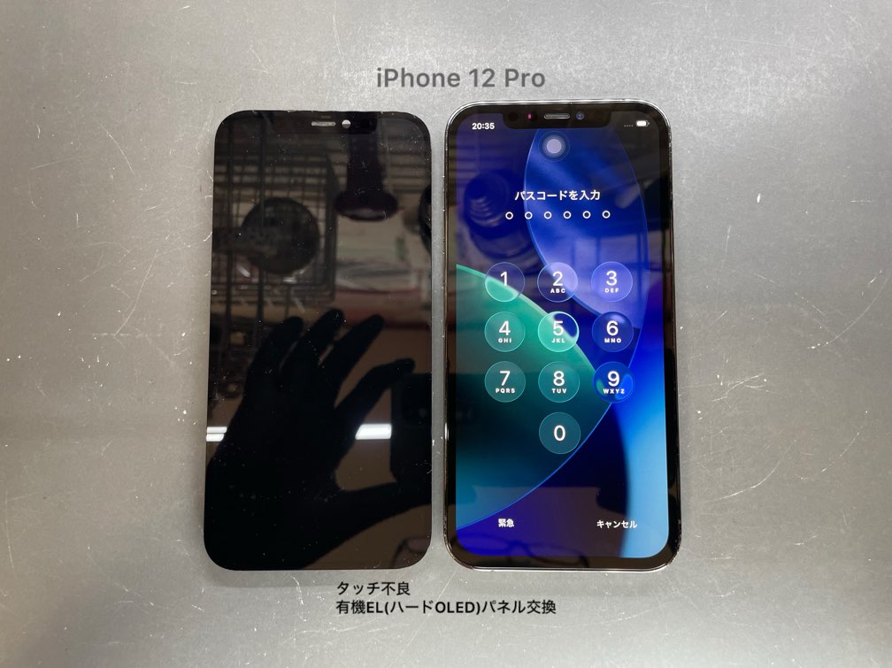 こちらのiPhone 12 Proは突然のタッチ不良によりパスコードが入力できず、ロック解除できなくなってしまった症状で画面交換の修理を承りました。