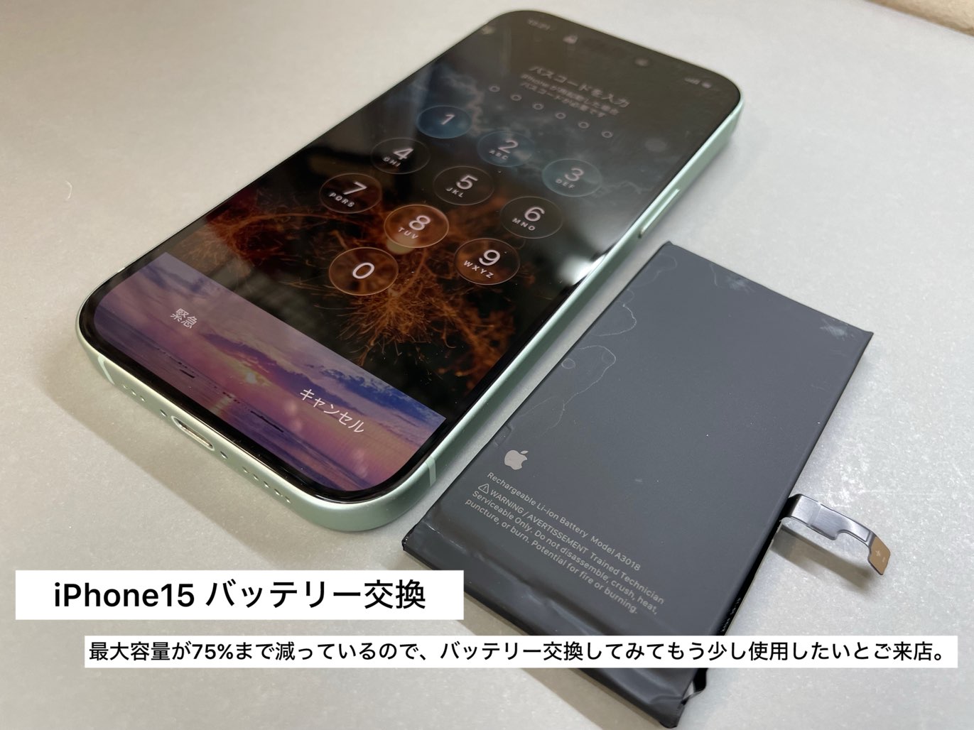 今回は、奈良市五条畑からご来店くださったお客様の、iPhone15バッテリー交換事例をご紹介します。