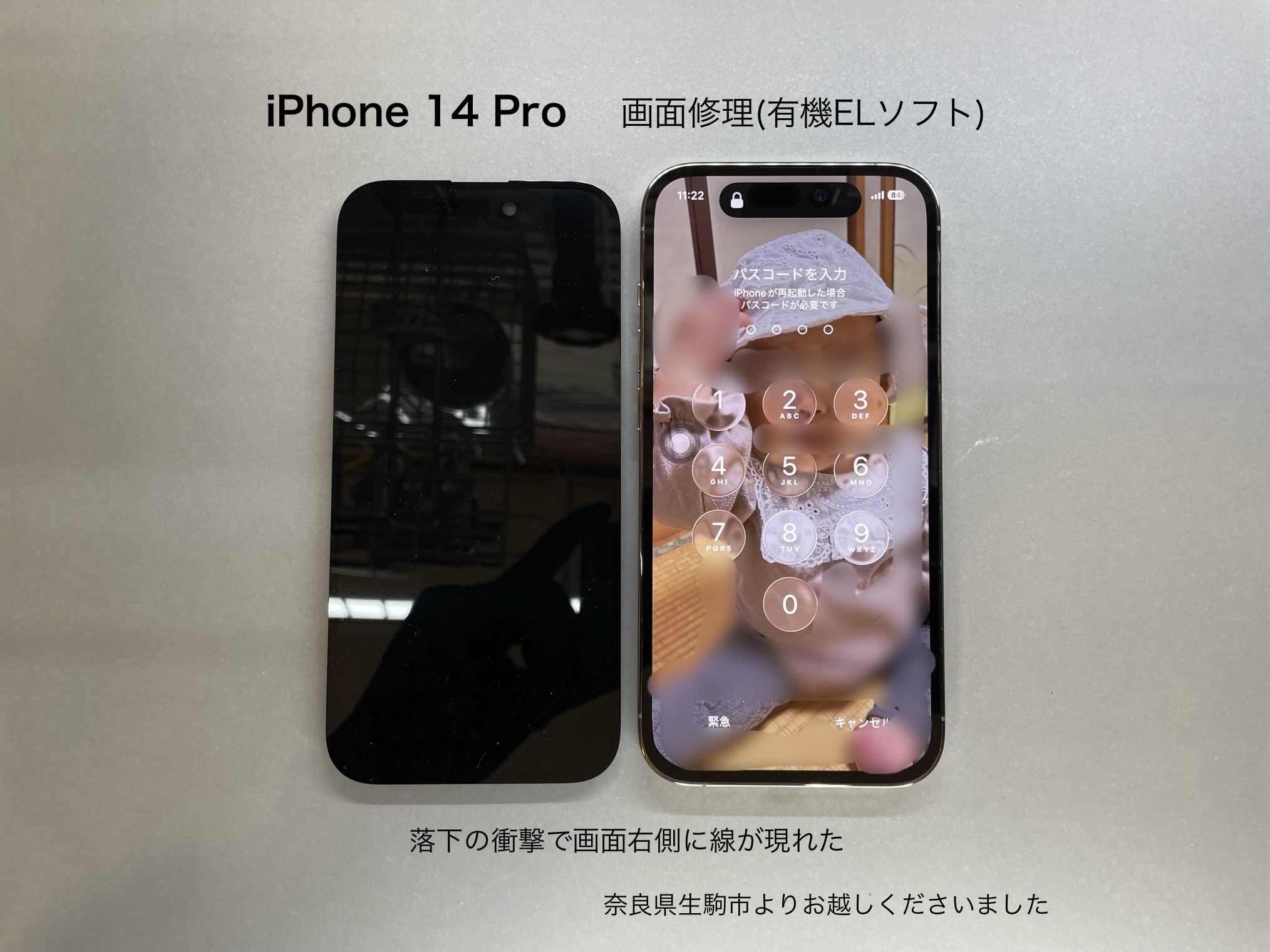 今回ご紹介させて頂きます、iPhone修理は奈良県生駒市からお越しのお客様よりiPhone 14 Proの画面修理のご依頼です。