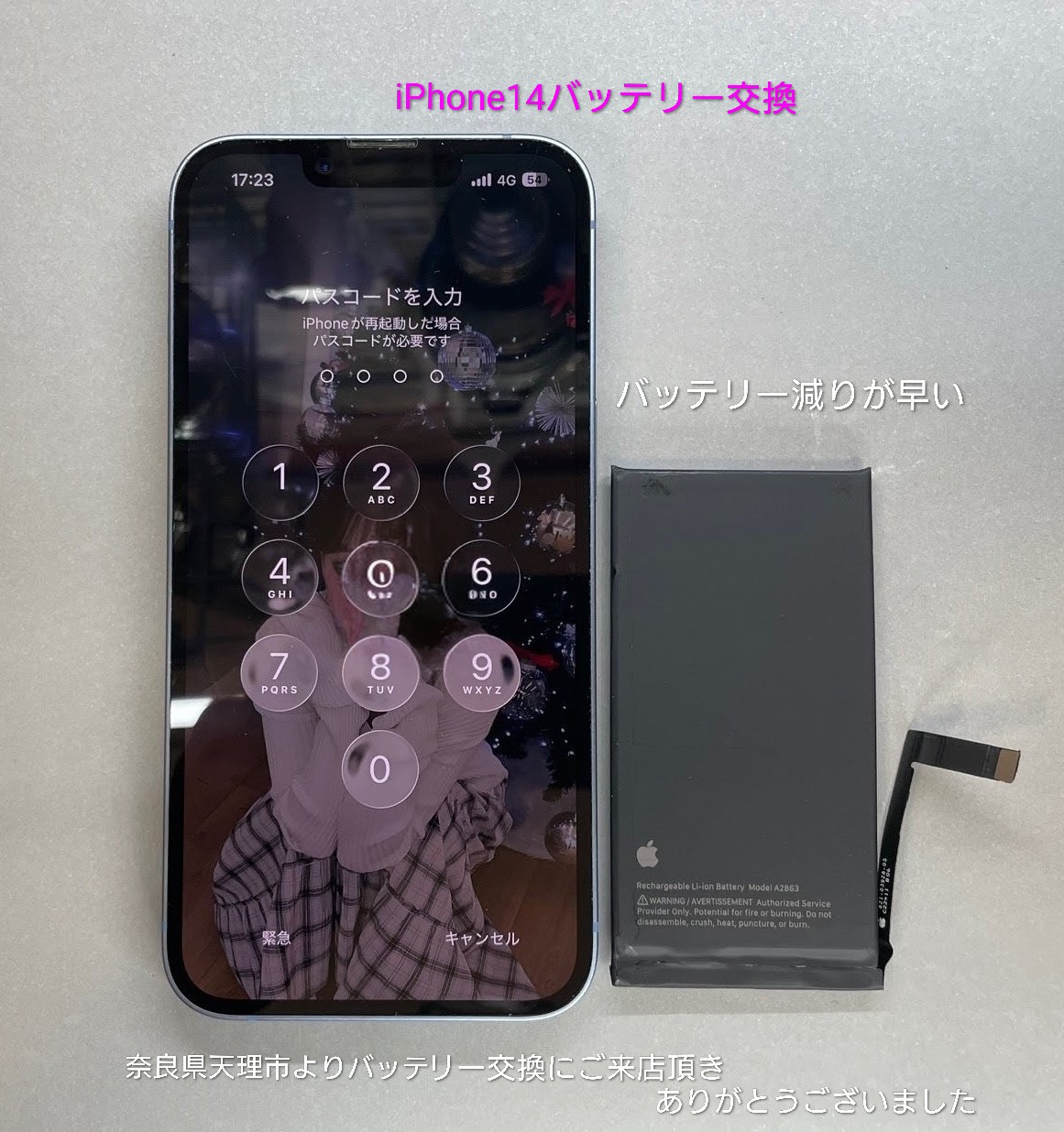奈良県天理市よりiPhone 14バッテリー交換にお越しくださいました。