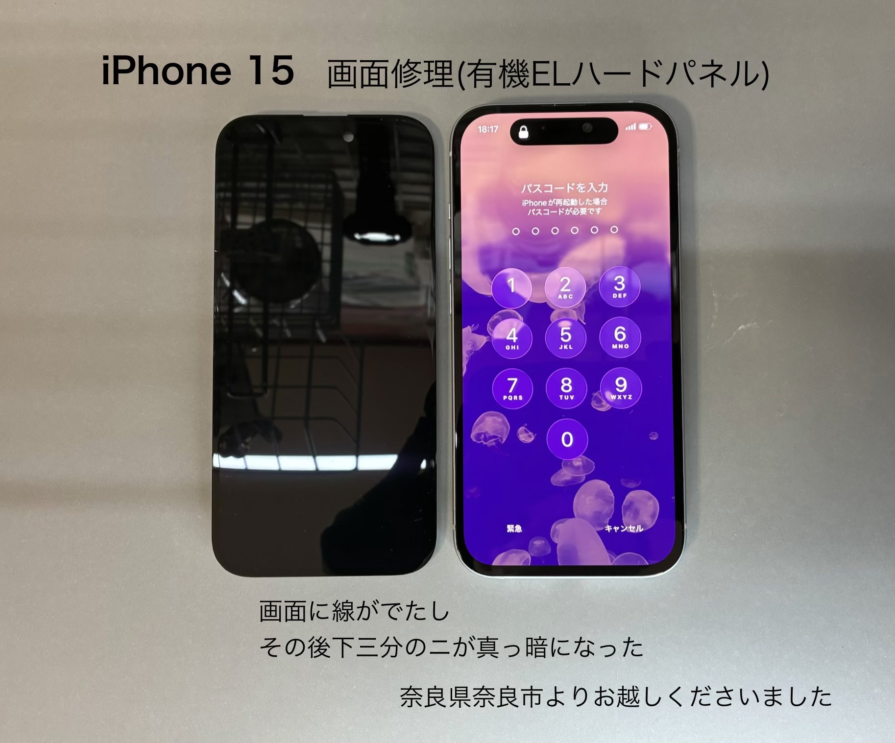 今回ご紹介させて頂きます、iPhone修理は奈良県奈良市からお越しのお客様よりiPhone 15の画面修理のご依頼です。