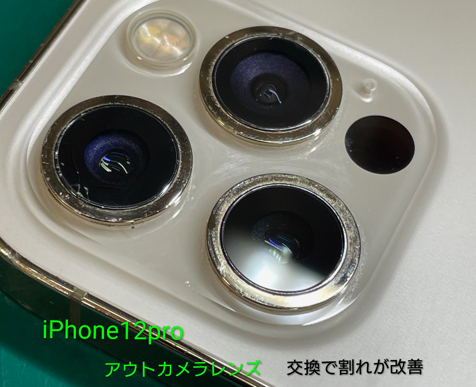 iPhone 12 Proレンズ割れ(1箇所)で写真を撮る時に画像が白く靄がかかり、鮮明に見えない症状でアウトカメラレンズ交換を奈良市登美ケ丘よりご来店頂きました。