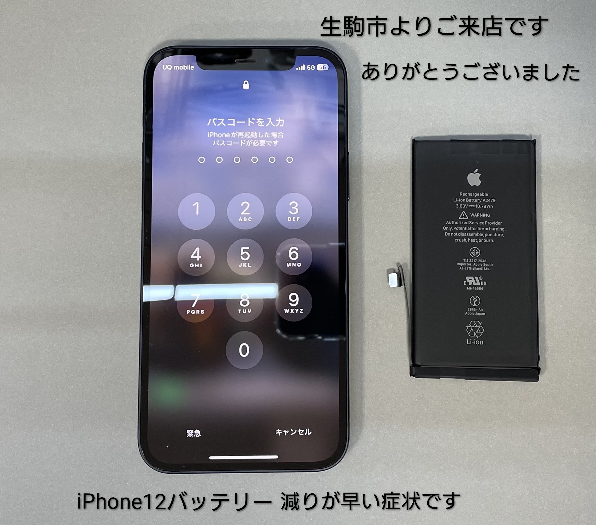 iPhone12バッテリー「減りが早い」症状でバッテリー交換にお越しくださいました。