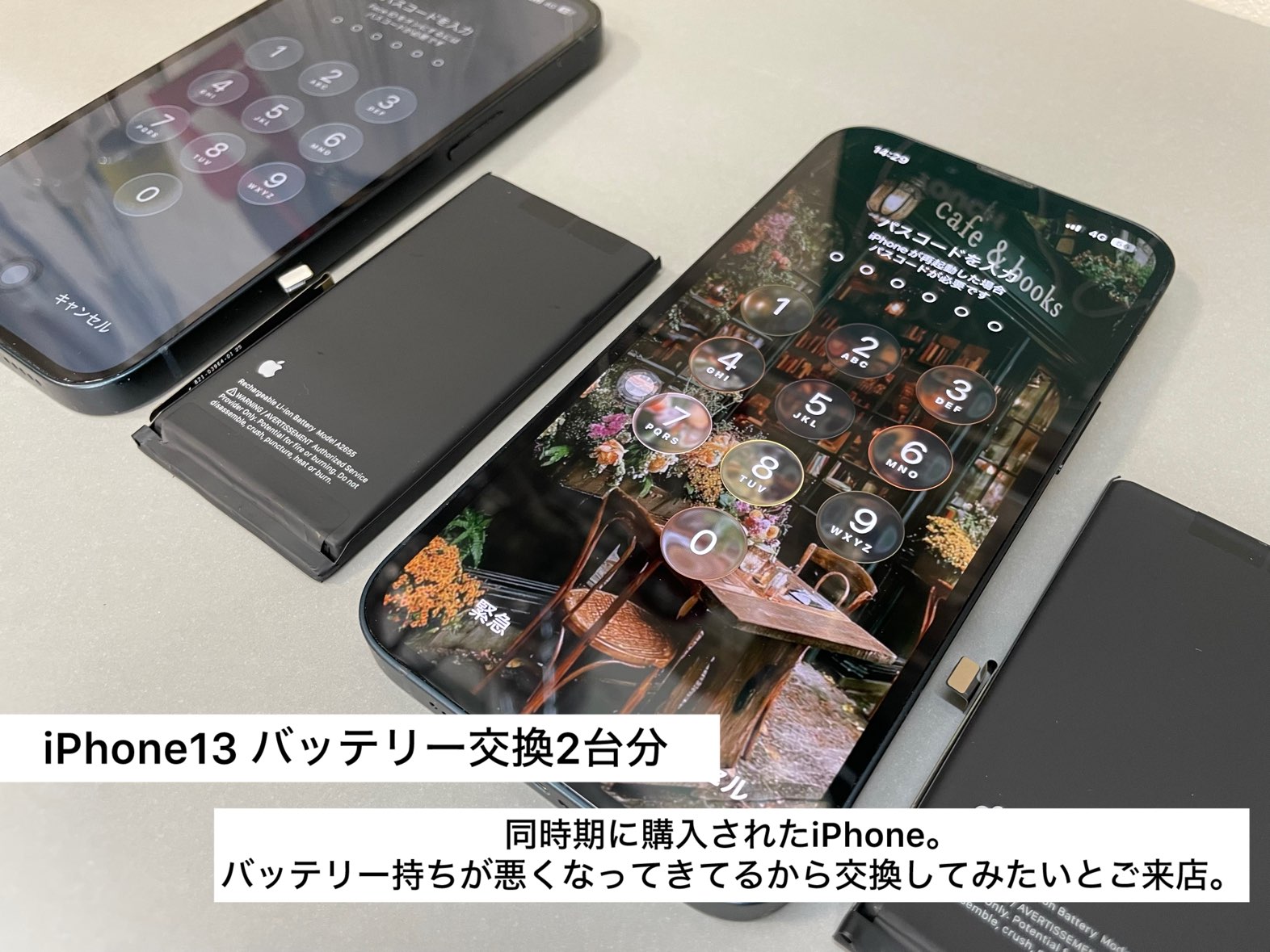 今回はご家族で同時期に購入された2台のiPhone13をお持ち込みいただき、どちらも「最近バッテリーの減りが早くなってきた」とのご相談でした。
