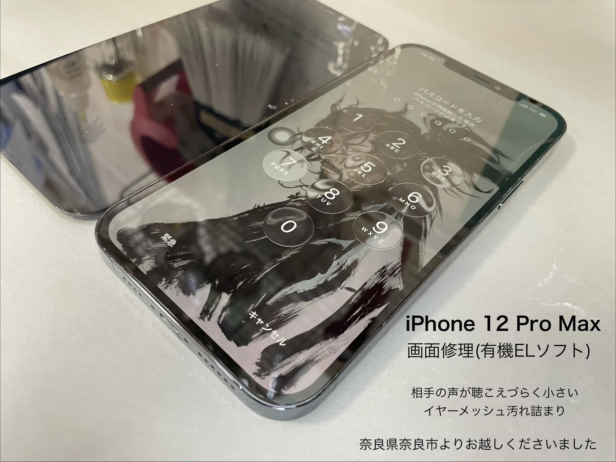 今回ご紹介させて頂きます、iPhone修理は奈良県奈良市からお越しのお客様よりiPhone 12 Pro Maxの画面修理です。