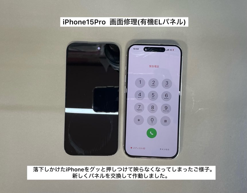iPhone15Proの画面修理(有機ELパネル)