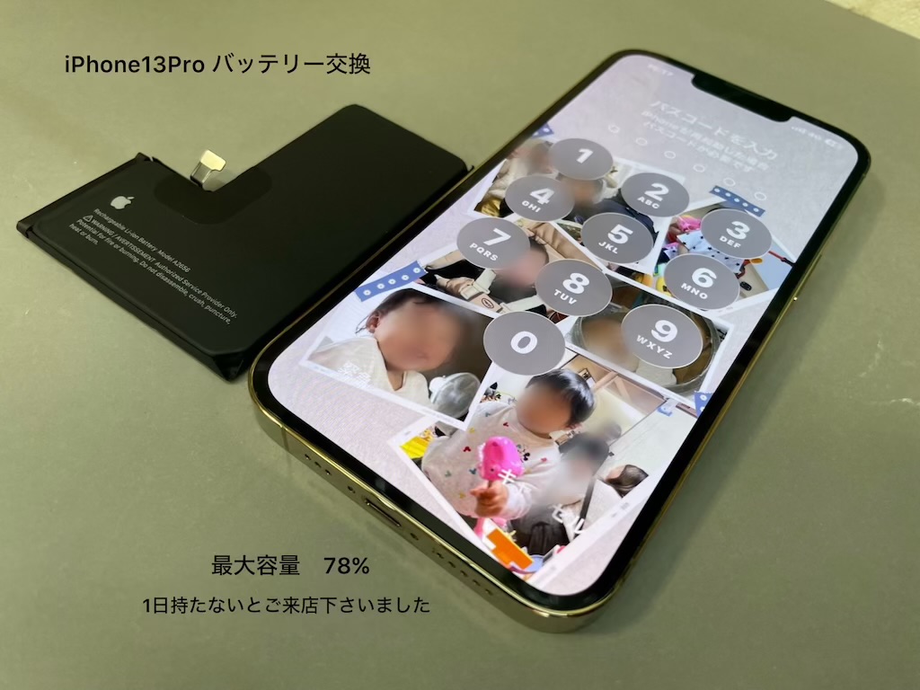 【iPhone修理 奈良】iPhone13Pro バッテリー交換|最大容量78%・1日持たない症状を改善|奈良市よりご来店