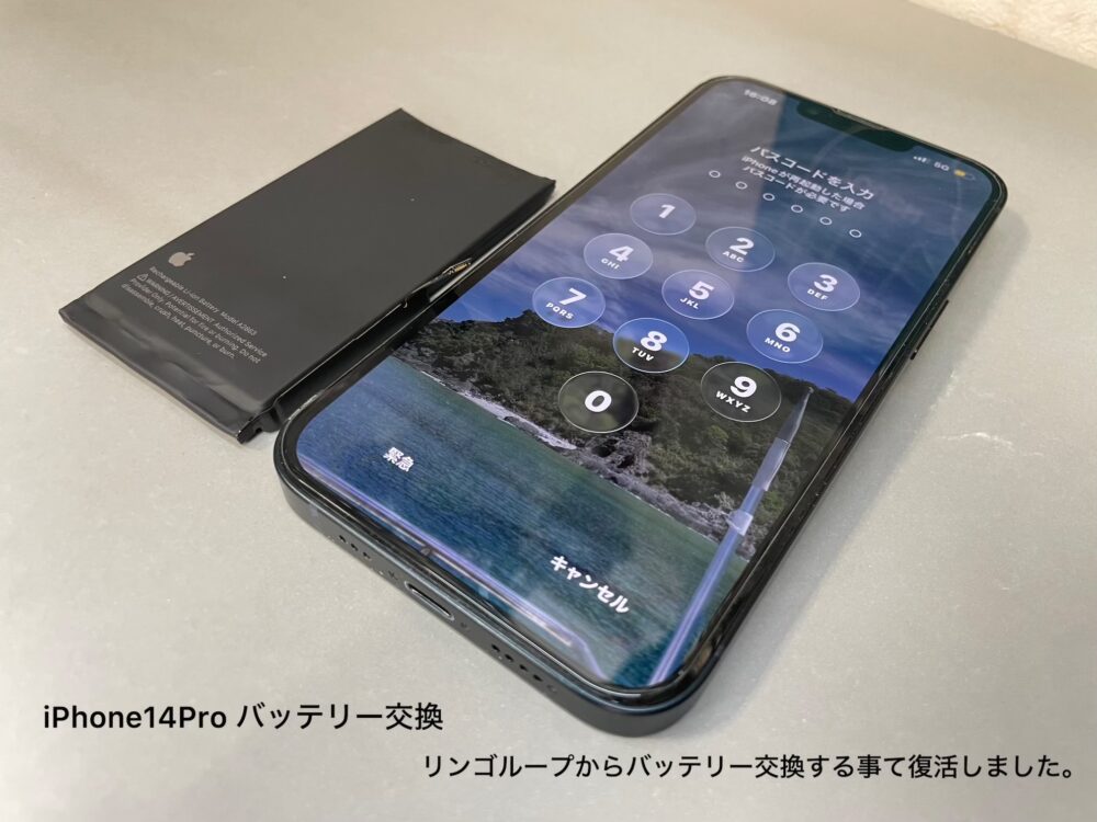 【iPhone修理 奈良】iPhone14Pro リンゴループ修理|バッテリー交換で復旧|奈良市南登美ヶ丘よりご来店
