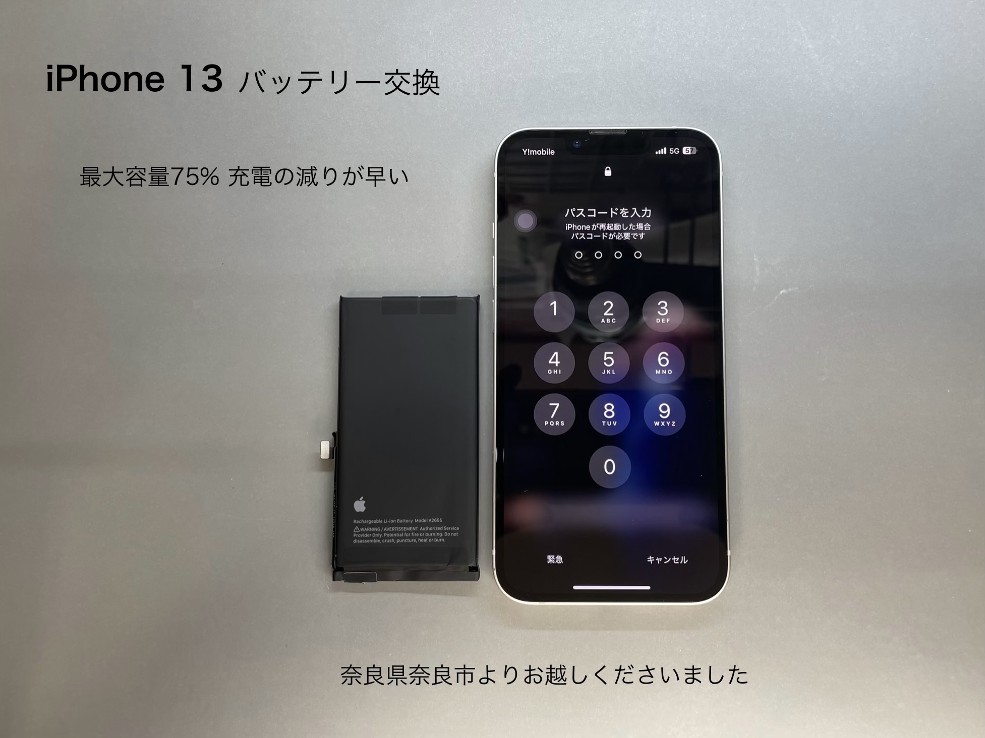 今回ご紹介させて頂きます、iPhone修理は奈良県奈良市からお越しのお客様よりiPhone 13のバッテリー交換のご依頼です。