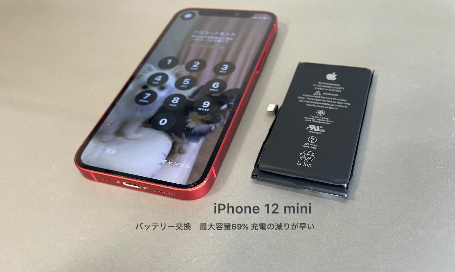 iPhone 12 mini バッテリー交換|最大容量69%・充電の減りが早い症状を改善(奈良市内よりご来店)