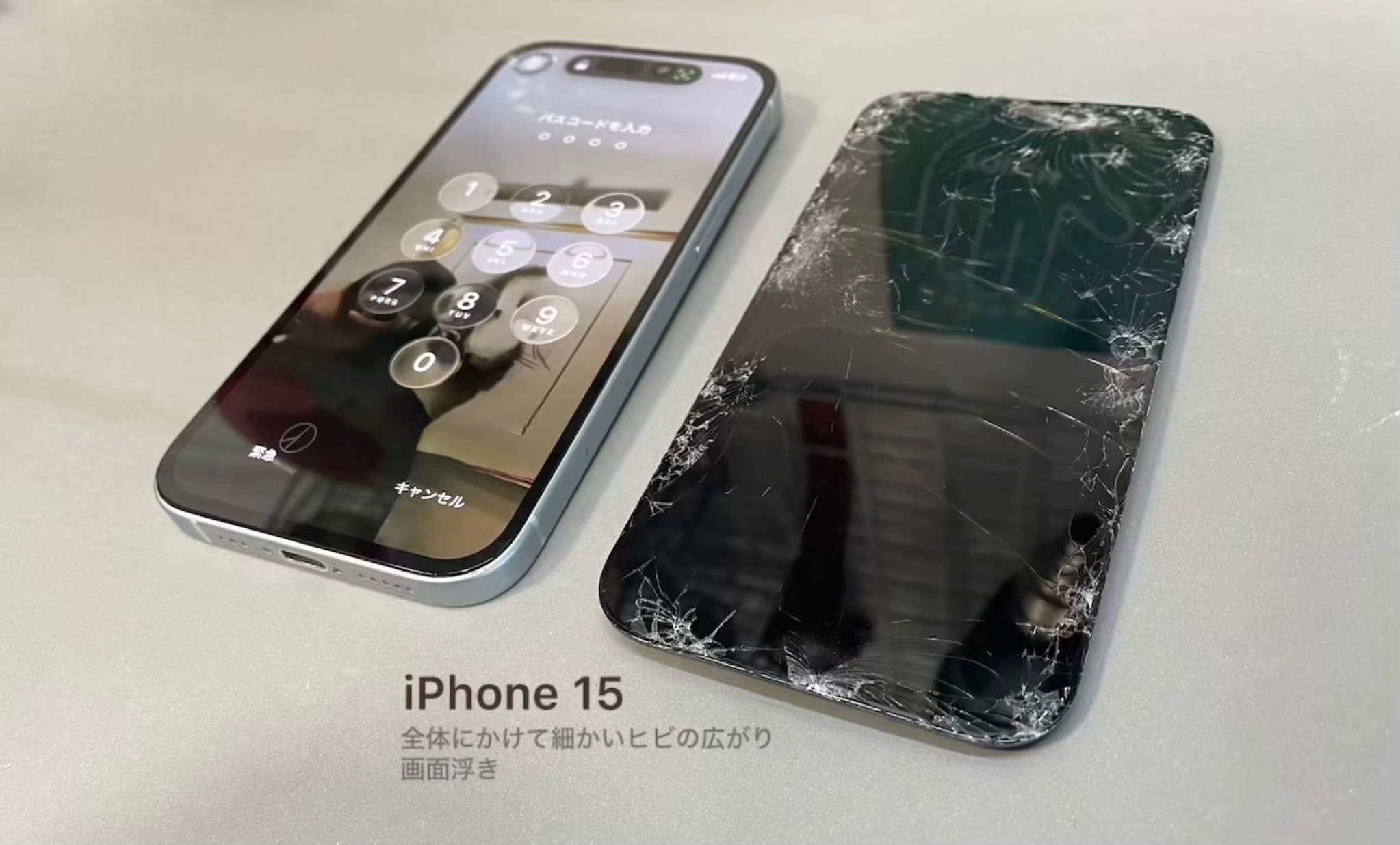 iPhone 15 画面修理|有機ELソフトパネル交換・表示不良とひび割れを改善(奈良市よりご来店)
