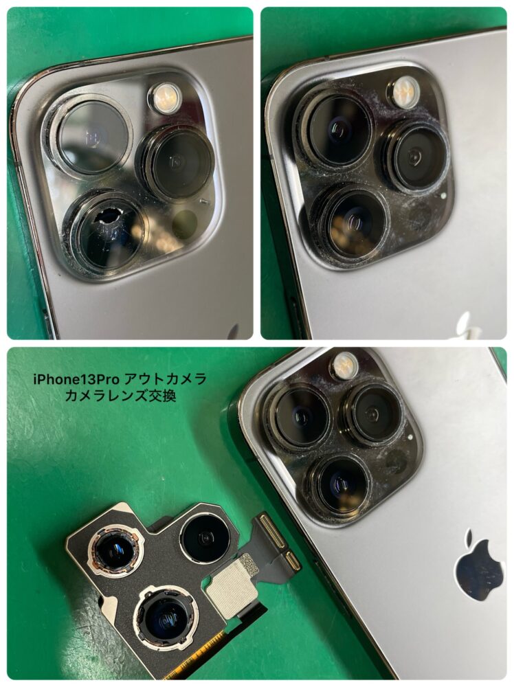 iPhone13Proのアウトカメラとカメラレンズ交換修理でご来店いただきました。