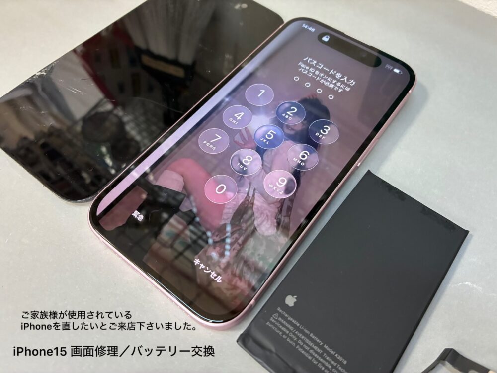 iPhone15の画面修理およびバッテリー交換でご来店いただきました。