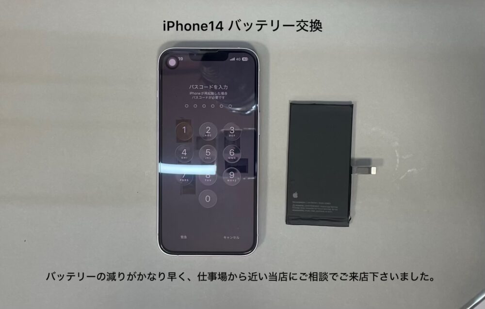 今回のご紹介は、iPhone14のバッテリー交換。大阪からご来店下さいました。