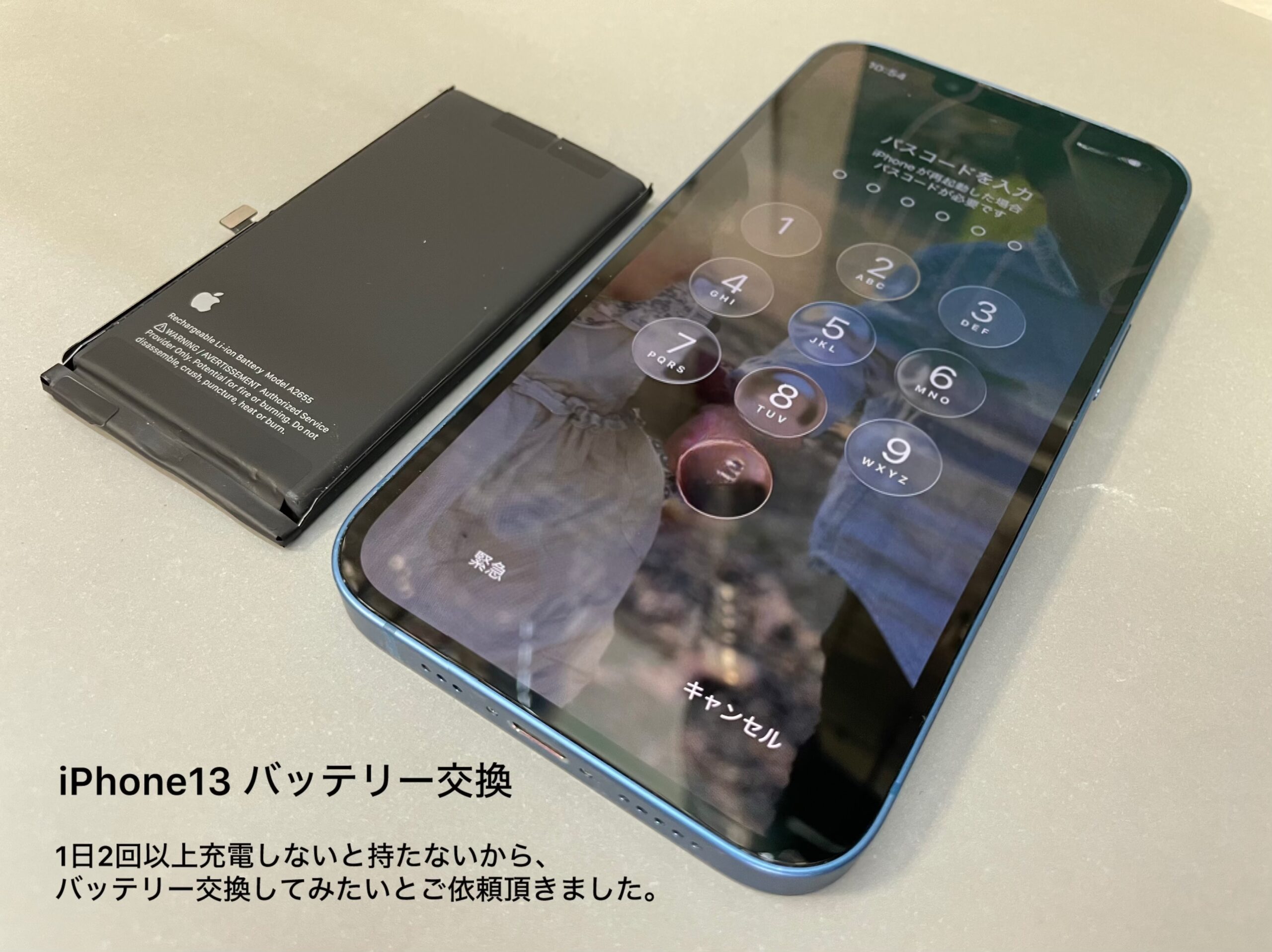 今回のご紹介は、iPhone13のバッテリー交換。生駒からご来店下さいました。