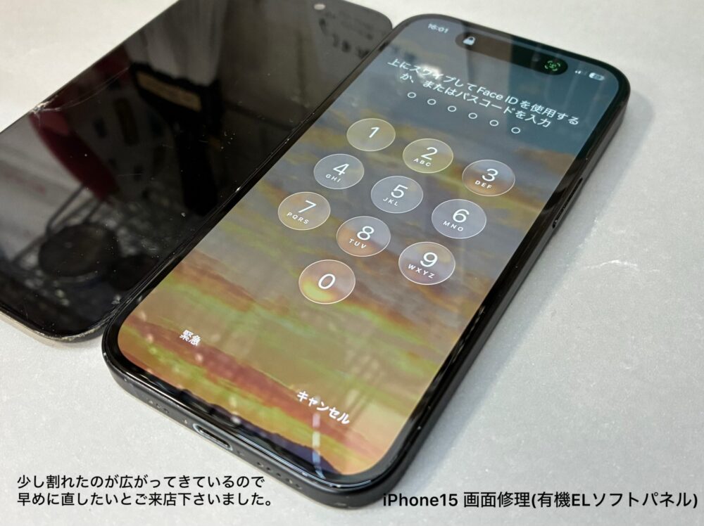 【iPhone画面修理 奈良】iPhone15 画面修理|ガラス割れの広がりを改善|即日対応 カメラアサヒ