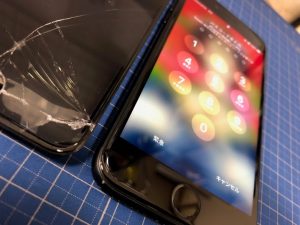 落とされて割れてしまった画面割れのiPhone7でしたが、ガラス液晶交換をさせて頂き無事に作業終了。