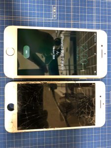 「iPhoneを落として画面が割れてしまった。」とお越し下さいましたのは、iPhone7のお客様。 ガラス液晶交換させて頂きました。割れた部分が反応して誤作動を頻繁に起こしたようで先に進めなくなってしまったようです。
