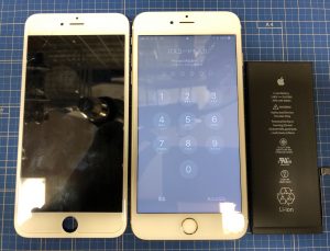 落とされて画面が割れたそうです…バッテリーも減りが早いとの事ですので同時に交換のご依頼です?