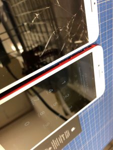 こちらのお客様もコンクリートにiPhoneを落として割れてしまったそうですが、半年前くらいからバッテリーの減りも早いので一緒に修理したいとのことでした。