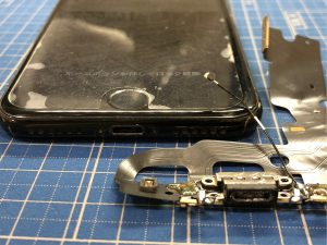 充電口が効かない時に交換する部品なんですが、このお客様は、充電のコードを抜く時に金属部分が中で詰まって取り出せない!今後充電ができない!とのこと。