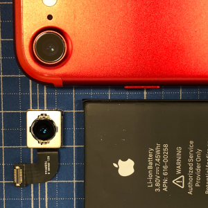 今回のお修理は、iPhone7のバッテリー交換とアウトカメラ交換修理です。 「充電100%の状態にして、何も使わずに放置していても数時間経てば10%以下の数値になる。外側のカメラも写りません。一緒に交換して下さい。」と女性のお客様がご来店下さいました。