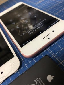 前にも当店をご利用されたことがあるそうで、今回は画面割れの修理と、最近バッテリーの減りが早いということでバッテリー交換の同時交換をご希望でした!
