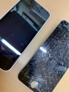 こちらは、iPhone5c。ひどい割れようですね!!