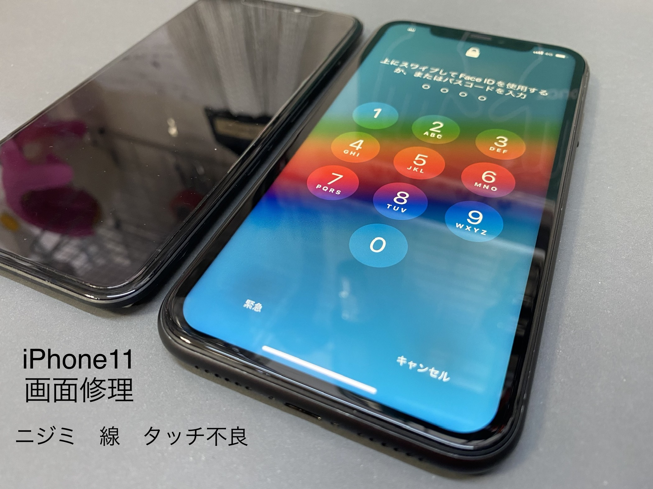 お持ち込み時の状態は画面にヒビ割れはなく、パネルが少し浮いており右端にニジミ、全面に線がありカメラの写りを確認出来ませんでしたが、画面交換後には問題なく操作して頂けるように改善されました。