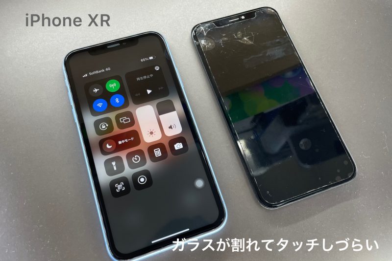 こちらは、iPhone XRの画面修理。奈良市中山町の方で、長く使用しているiPhone だそうです。割れているところがタッチが効きづらくなってきてこれからどうしようか?とご検討されていた様子。