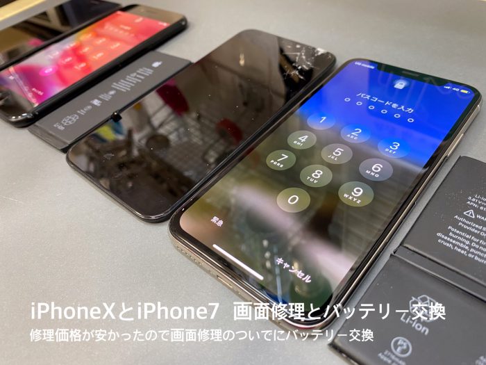 iPhoneXとiPhone7の画面修理とバッテリー同時交換「iPhoneの画面修理が安いので、バッテリー交換もついでにお願いできますか?」