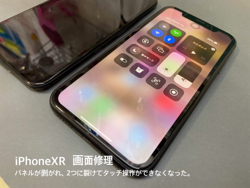 お持ち下さったiPhoneXRの状態はというと、パネルが裂けてしまっており、タッチ反応が効かない状態でした。