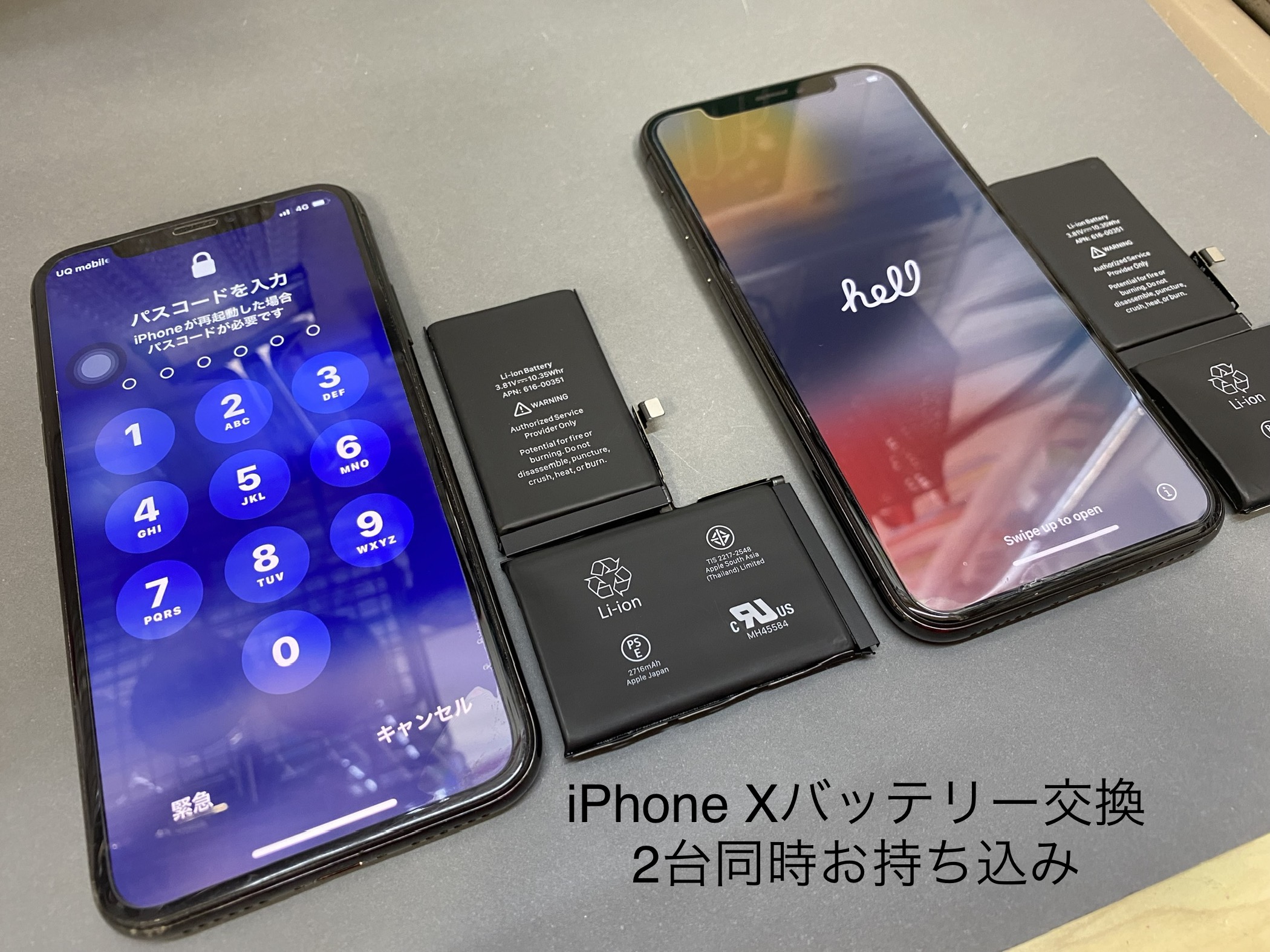 奈良県北葛城郡よりiPhone Xバッテリー交換 2台同時お持ち込みです。