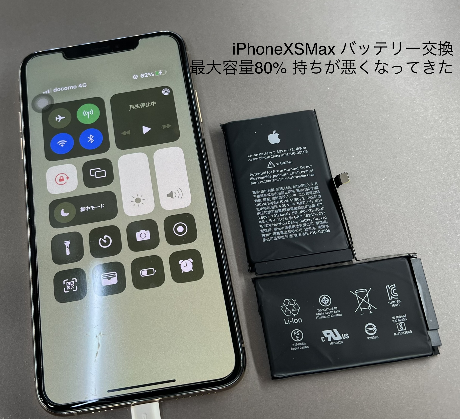 奈良県生駒市よりお越し下さいました、iPhoneXSMaxバッテリー交換のご依頼です。